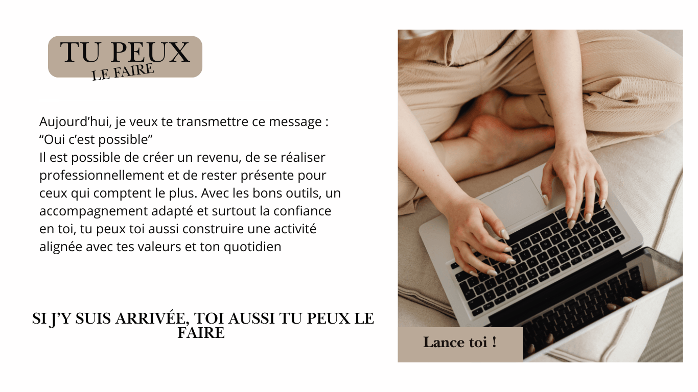 C’est naturellement que je me suis tournée vers le marketing digital. Ce domaine m’a permis de créer une activité flexible, en accord avec mes valeurs, tout en générant un revenu stable. Aujourd’hui, je mets mes compétences au service de celles et ceux qui souhaitent développer leur présence en ligne, tout en construisant une vie professionnelle qui laisse de la place à l’essentiel.